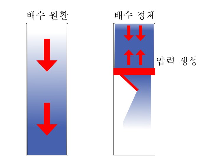 발생 원리: 변기 밑에 트랩을 달면 배수 통로가 좁아집니다. 물이 내려갈 때 공기와 오물이 시원하게 빠져나가지 못하고 일시적으로 정체되죠.